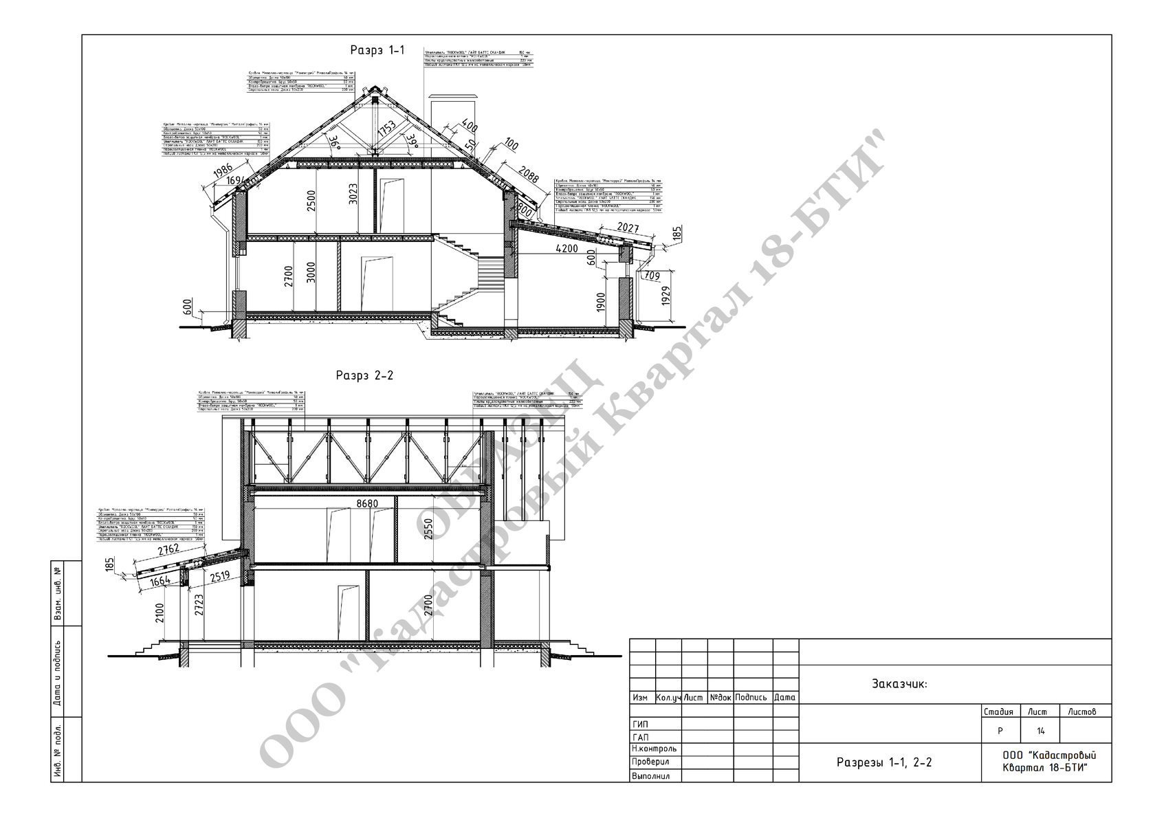 ● материал кровли;